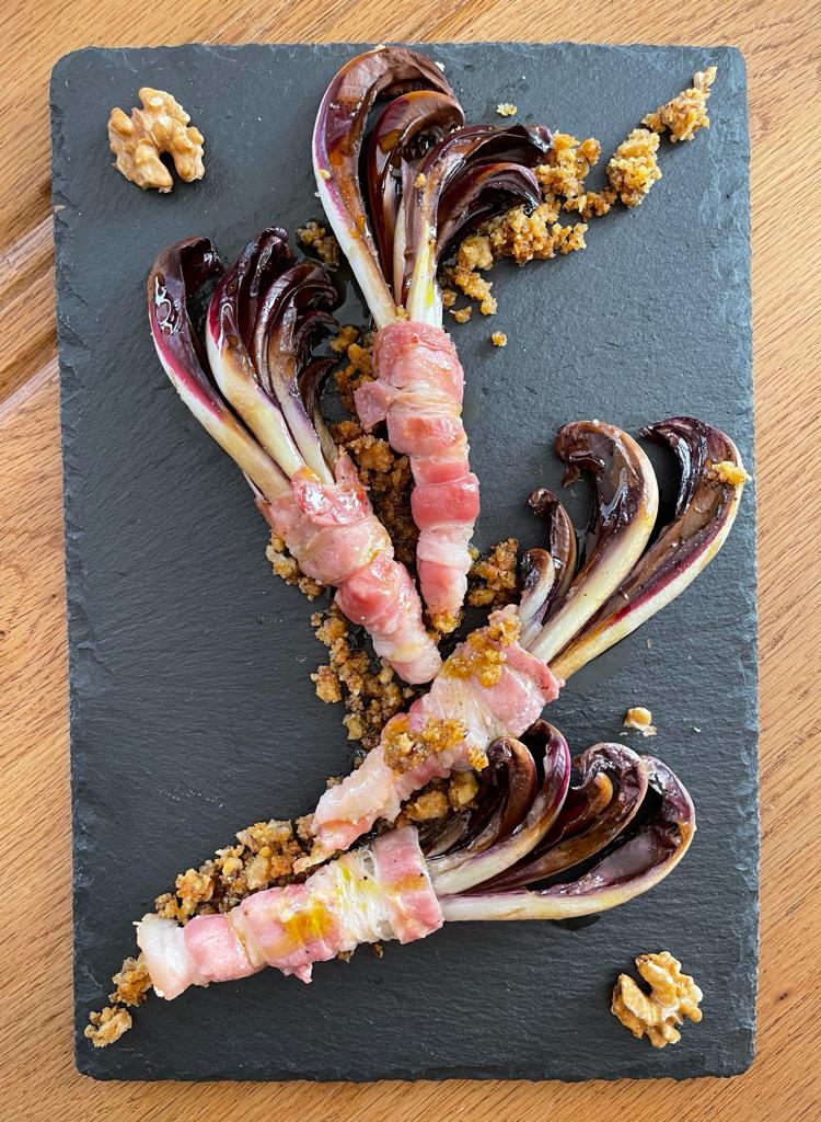 Radicchio di Treviso tardivo IGP con pancetta e crumble di noci