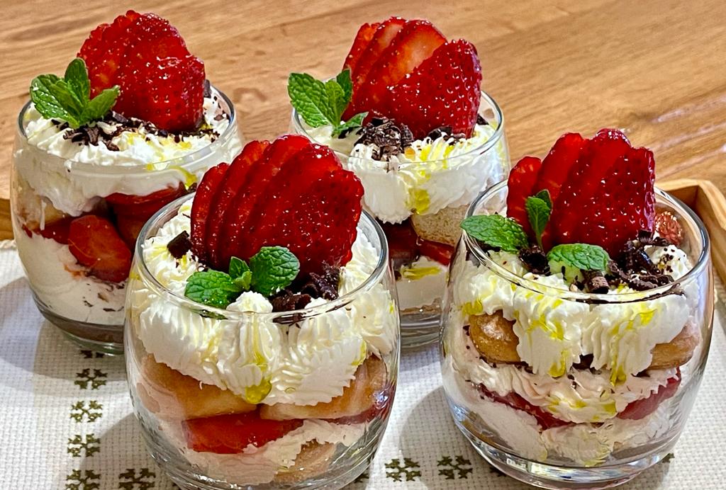 Tiramisù in bicchiere alle fragole e cioccolato fondente