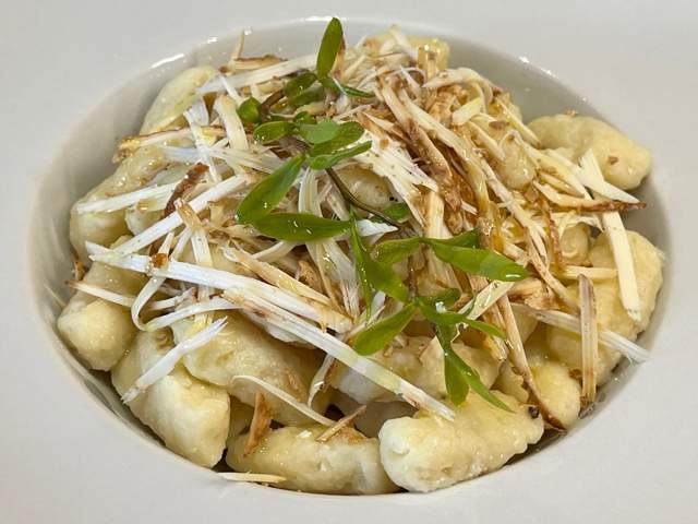 In una terrina disporre la farina setacciata, aggiungere il sale fino, e, versando l’acqua poco alla volta, con un cucchiaio di legno amalgamare bene l’impasto, sbattendo con energia. Nel frattempo far scaldare l’acqua in una pentola. Una volta raggiunta la bollitura, salarla e poi cominciare ad immergervi l’impasto, diviso in piccole porzioni (circa mezzo cucchiaio per volta); un’operazione da fare velocemente. Quando gli gnocchi cominceranno a salire a galla, si raccoglieranno con una schiumarola. Una volta scolati tutti, metterli direttamente nel piatto ed aggiungere il burro già precedentemente fuso, la ricotta affumicata grattugiata a julienne e il formaggio Monte Veronese grattugiato.