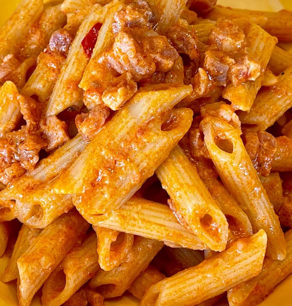 Mettere a bollire un tegame d’acqua per le penne, insieme a una manciata sale grosso; appena l’acqua bolle versare le penne cuocendole al dente, quindi scolare direttamente nella padella del sugo. Amalgamare il tutto. Servire le penne alla vodka ben calde