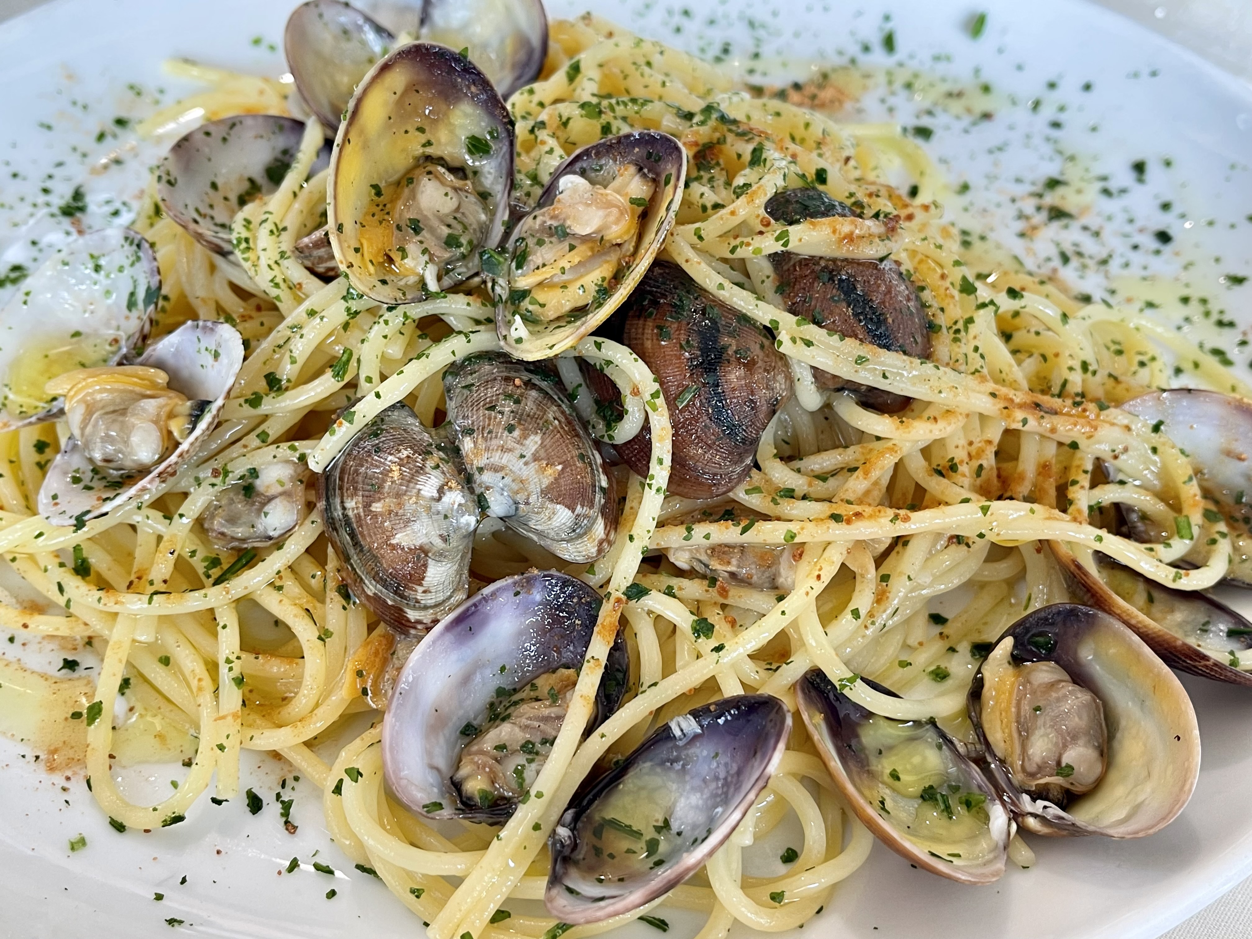 Spaghetti con vongole veraci, bottarga di muggine e olio evo