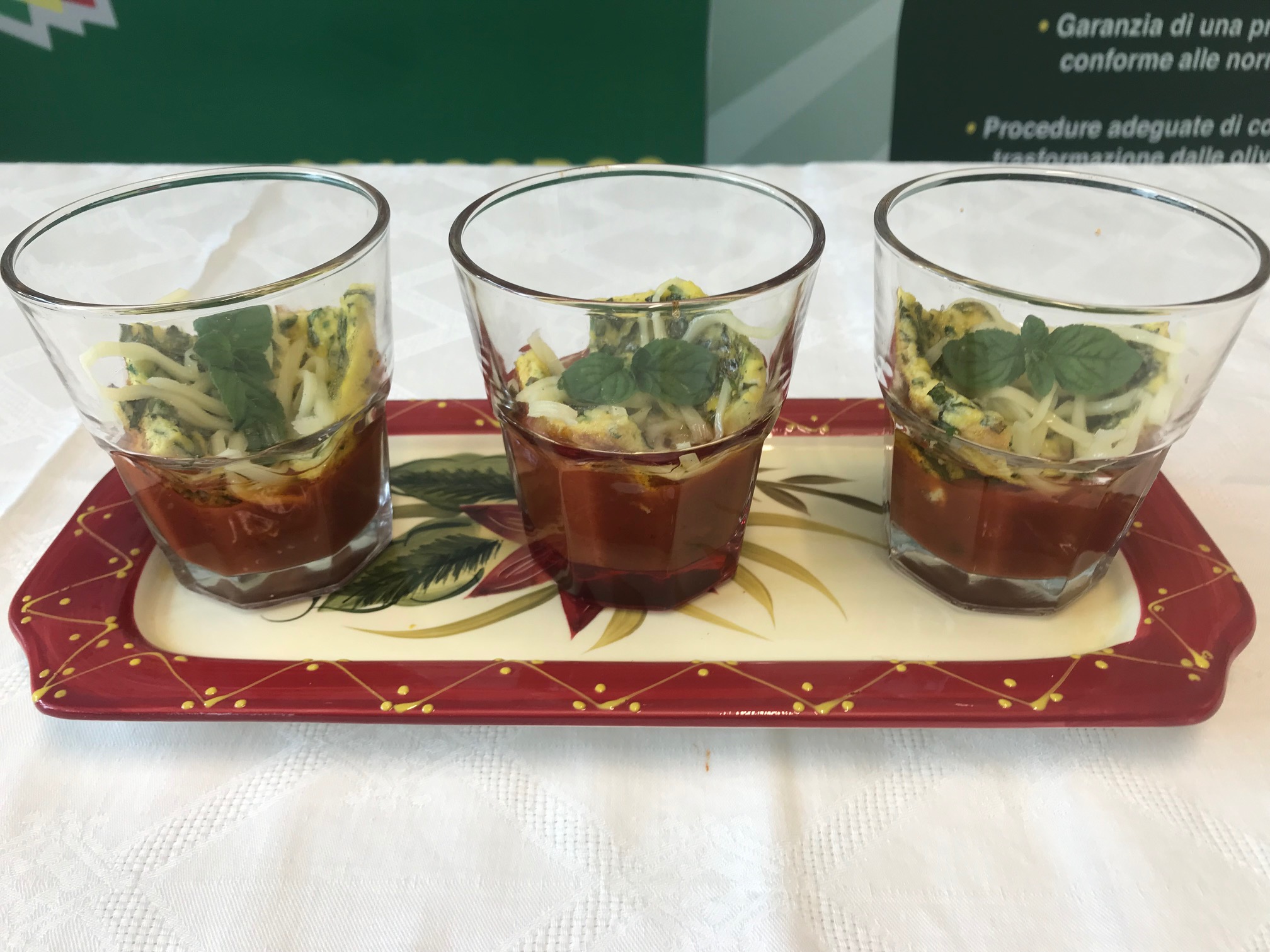Ho preparato una "Frittatina in bicchiere", una proposta abbinata ad un olio extravergine 100% italiano, fruttato medio. Un antipasto sfizioso, dal sapore gradevole, che solletica un tantino il palato per la presenza della salsa di pomodoro datterino, con l’aroma di timo.